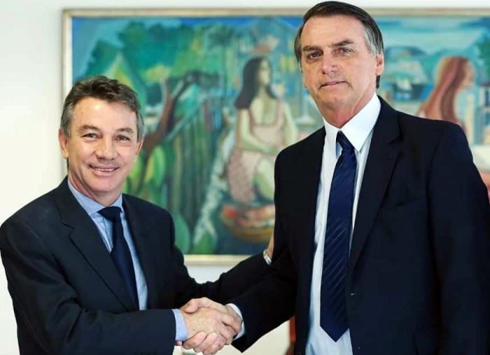 O governador Antonio Denarium é recebido pelo presidente Jair Bolsonaro, em Brasília. Foto extraída do site http://www.rr.gov.br em 05/01/2020. às 15h