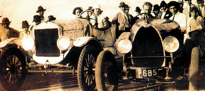 No carro P-685, o piloto Arthur Abrigatto, de boina preta , e o dono do autódromo, Romoaldo Negrelli e, no carro ao lado, suas respectivas esposas