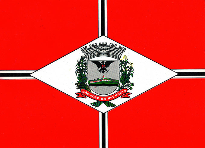 A Bandeira de São José do Rio Preto foi criada pelo heraldista Arcinoé Antonio Peixoto de Faria e adotada em 19 de julho de 1971, com a Lei 1.569/71, sancionada pelo prefeito Adail Vettorazzo. O artigo 6º da lei determina que a Bandeira do Município de Rio Preto “será esquartelada em cruz, sendo os quartéis de vermelho, constituídos por quatro faixas brancas carregadas de sobre faixas pretas, dispostas duas a duas, no sentido horizontal e vertical, e que partem dos vértices de um losango central branco onde o Brasão Municipal é aplicado”.