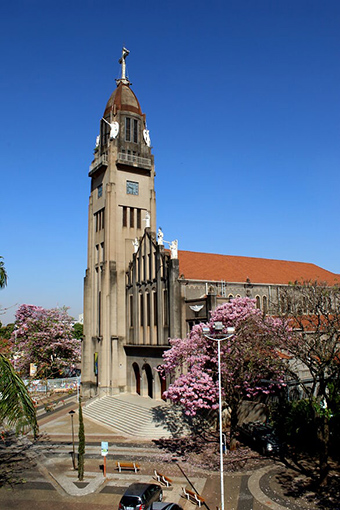 Basílica vista da esquina da rua Silva Jardim com avenida Constituição em fotografia de Néia Rosseto, feita em 13/9/2017