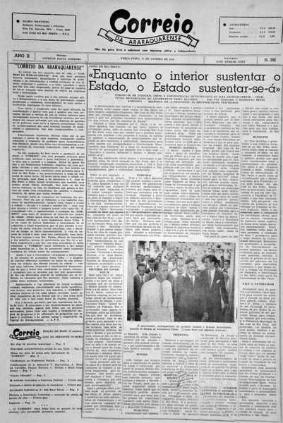 Edição do primeiro aniversário do Correio da Araraquarense, em 1956. Hemeroteca Prof. Dario de Jesus, Arquivo Municipal