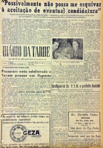 Edição do Diário da Tarde, em 20 de março de 1958. Hemeroteca Prof. Dario de Jesus, Arquivo Municipal