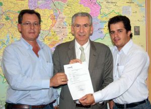 Na foto, o prefeito Edvaldo Papini com o secretário estadual de Habitação, Silvio Torres (de gravata). Extraída do site http://deangeloimprensacdhu.blogspot.com/,