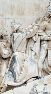 Legenda: Ao lado, a efígie de Frei Henrique, no Padrão dos Descobrimentos, em Lisboa