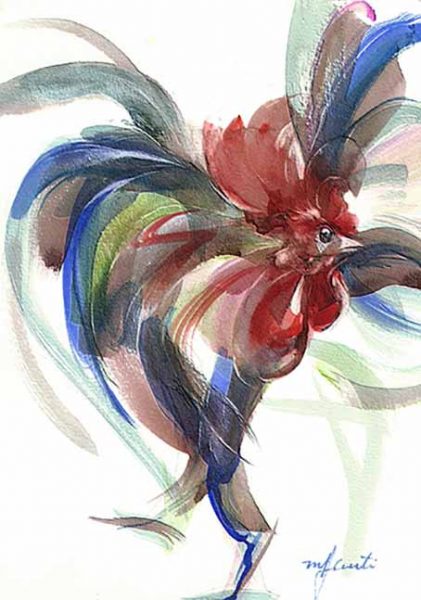 Aquarela Galo Patinador, de Maria Helena Curti, de 2010