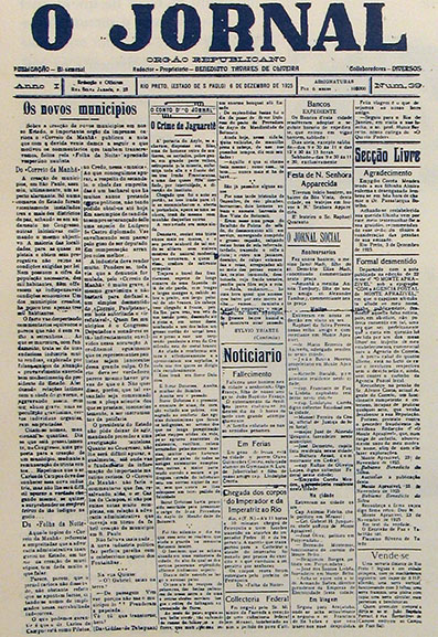 Circula em 6 dezembro de 1925, o bissemanal como órgão republicano, O Jornal, fundado por Benedicto Tavares de Oliveira.