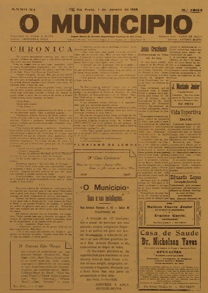 Fundado inicialmente como semanário, em 1 de novembro de 1916, como órgão do Partido Republicano Paulista de Rio Preto, por João Vargas Bragança, O Município passou a ser um jornal diário nos anos de 1920, chegando a 1 de janeiro de 1928 à sua edição nº 1.984 sob a direção de Antonio Muffa, Aristides A. Ávilla e Dario de Jesus como redator-chefe.