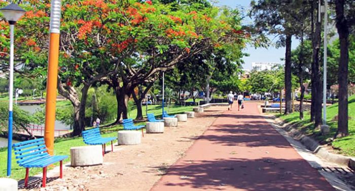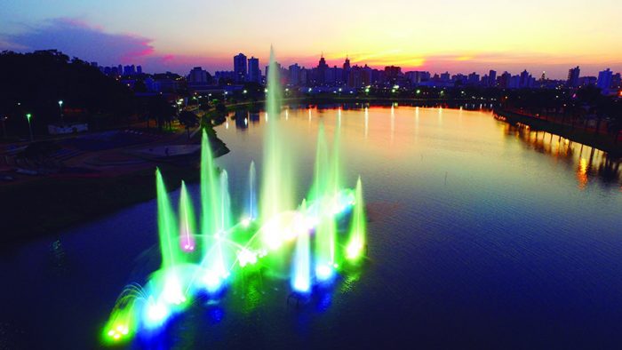 A Represa Municipal com a fonte luminosa implantada pelo prefeito Valdomiro Lopes. A fotografia de 2015