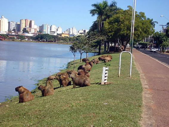 As capivaras são uma atração na Represa Municipal. Fotografia de 2019